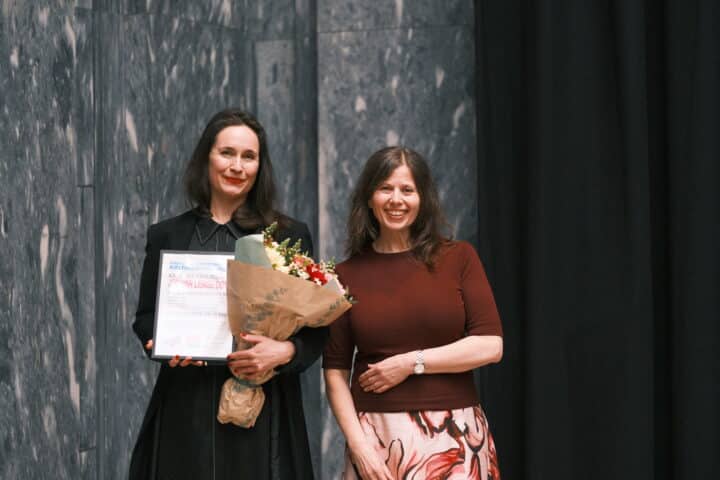 – Som dere ser er ikke Karl Ove Knausgård her i dag selv, han er på reise. Kjersti Instefjord fra Oktober, redaktøren til Karl Ove tok imot prisen for ham på scenen. – På vegne av forlaget og forfatteren vil jeg si tusen, tusen takk for Ungdommens kritikerpris. Kanskje den viktigste prisen i Norge.