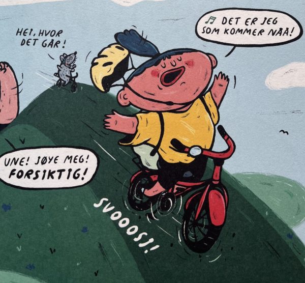 Boka handler om at Une skal starte på skolen, men den handler like mye om å krasje på sykkel og om å kunne si unnskyld.