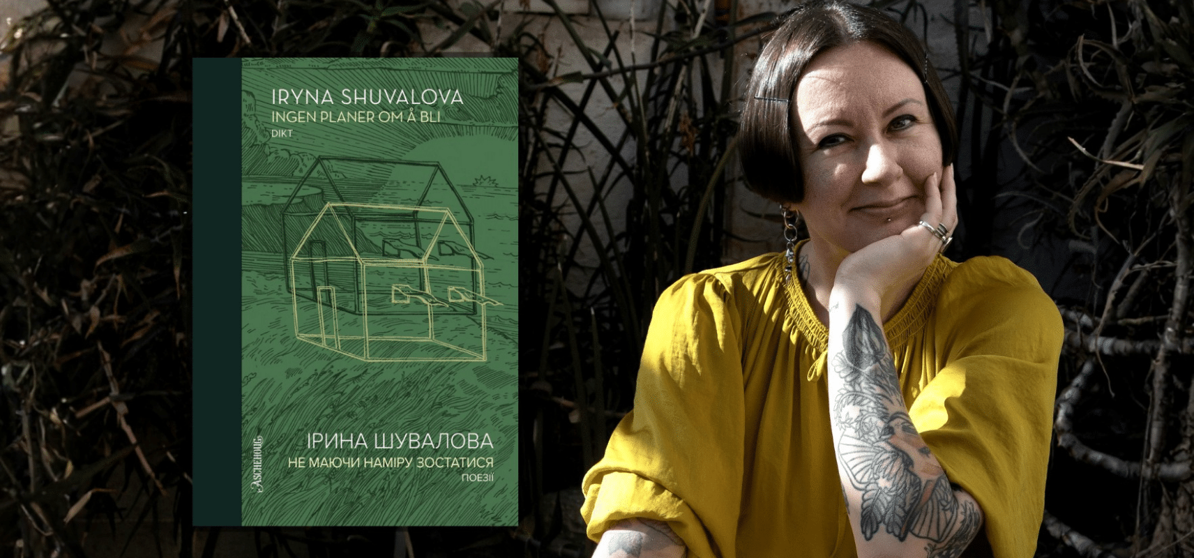 Iryna Shuvalova (f. 1986) er poet, oversetter og akademiker fra Kyiv, Ukraina. Hun har utgitt fem diktsamlinger på ukrainsk, bl.a. «stoneorchardwoods» (2020), som ble kåret til årets poesisamling og «endsongs» (2024), som ble omtalt som «en fremtidig klassiker». «ingen planer om å bli» er Shuvalovas første utgivelse på norsk.