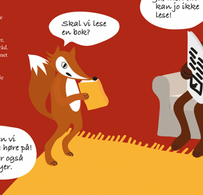 Småbarnsboken «Revungen» er uten tekst. På denne måten kan foreldre og andre omsorgspersoner fortelle for barnet sitt på eget språk, uansett norskkunnskaper. De voksne kan snakke med barnet med utgangspunkt i bildene og de forskjellige hverdagssituasjonene i boka.